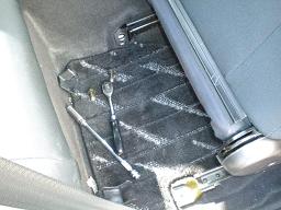 シートレール固定用ボルト4個を外して、シートベルトのロック側のカプラーを外せば簡単にシートは外れます |