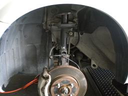 まずはストラットとナックルを固定してるボルトやスタビリンクなどを外し、下の準備をします |