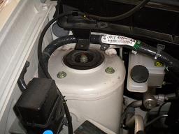 アッパーマウントはたいていナットで固定ですがこの車はボルトで固定されていました