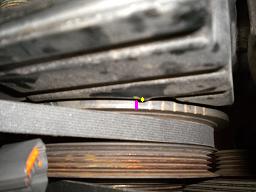 この位置に本当はピンク線が来ていなければいけないのですが、プーリーのダンパーの劣化により、これだけずれてしまっていました