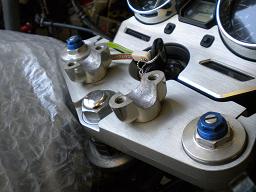 歩ッシュのハンドルとハンドルポスト、ニッシン製のマスターシリンダーです |