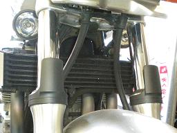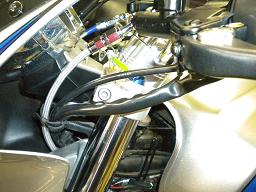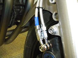 短いホースはフロントフェンダーの上をアーチ状に渡り、左キャリパーに接続されます