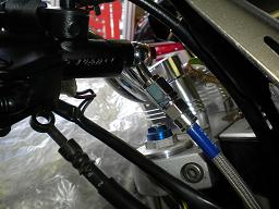 マスターから右側キャリパーにまずはホースを伸ばします |