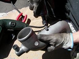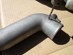 指で指しているジョイント風の金具も転がっていたFD用パワーフローのパイプに圧入されていた物です