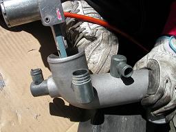 御覧になっている画像はパイプ内に出っ張った部分をベルトサンダーという物を使って平らにしている様子です