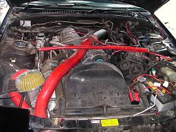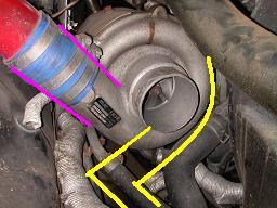 赤いパイプはインタークーラーのパイプ