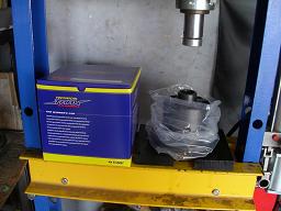 まずは純正のサイドベアリングをLSDに取付けるためにプレスにセットします