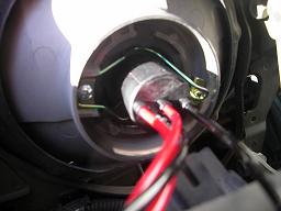 直接ヘッドライトの電源線からバラストに電源を送ります