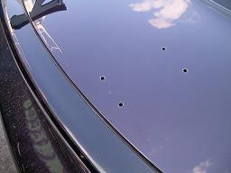取り付け時にはこの穴から水が入らないようコーキング処理をし、、足の取り付け部にはゴムシートを挟みこみ、角度修正をします。