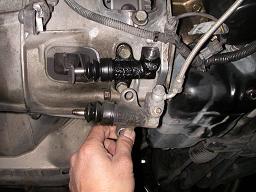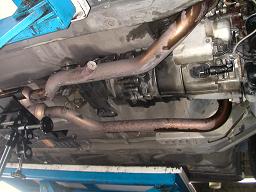 フロントパイプ、プロペラシャフト、シフトレバー等を外し、ギアオイルを抜いてミッションの取り外しです