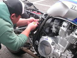 今回は常連のお兄ちゃんが丁度XJR1300のオイル交換時期だったので交換することになりました