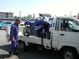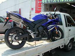 いつもお世話になっているバイクハウスオレンジの杉山社長がピッカピカのR1を運んで来てくれました。