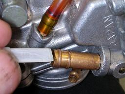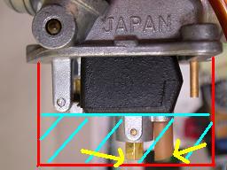 この小さなパーツがガソリンをキャブの中に一定量に保つための重要な役割をしています