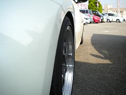 ジャッキを降ろしてタイヤが接地し始めると、はみ出していたタイヤがだんだんキャンバーがついてきて入っていきます