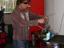 祈るような表情でクランキングするY君。 さぁ結果は???