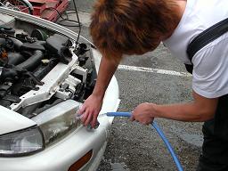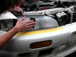 最近の車両に多い、プラスチックヘッドライトレンズ。