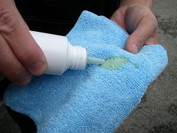 この青い特殊な布に、特殊コンパウンドを少量塗ります。