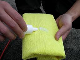 この黄色い特殊な布に、これまた超特殊なコンパウンドを少量塗り、レンズを丁寧に磨いていきます