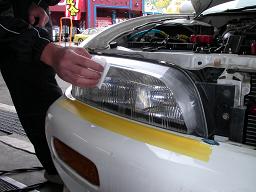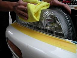 ここまでは一般のコンパウンドで車検屋が光量不足のために磨く作業と一緒ですよ・・・(ここまで丹念に磨いてはいないかっ?)