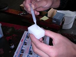 磨き仕上げのスポンジに同じく特殊コンパウンドを塗り、細かい傷を取り除いていきます |