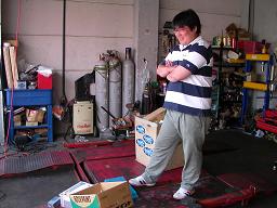 常連客のミスターがやってきて、ジェイケイの真剣な作業風景を関心しながらみておりました