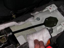 先程のドンピシャの穴だけはエアバックセンサー固定用ブラケットと共締め出来ました |