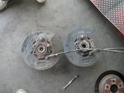 この後ローターをセットしてサイドブレーキの調整を行います |