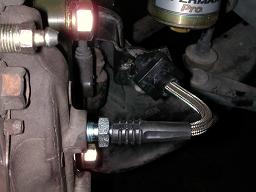 本当はS14等はクニャって曲がった金属のチューブが付いて、その先からの交換が殆どなのですが、ここのはキャリパーにダイレクトに繋がります
